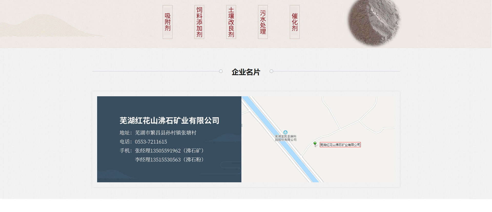 蕪湖紅花山沸石礦業(yè)有限公司距繁昌縣約18公里,有公路直達(dá)礦區(qū),距滬銅鐵路線的繁昌站、楓香墩站約20公里,礦區(qū)西側(cè)的赤沙河道直通荻港至長江,水路交通地理位置好。沸石是硅氧、鋁氧四面體構(gòu)成的架狀硅酸鹽,有較大的比表面積和孔體體積。我礦沸石經(jīng)321、803地質(zhì)隊(duì)勘探儲量約一億噸以上,主要為絲光沸石(Ca、Na、K2)【ALSi2O2】27H2O,此外還含有石英、蒙脫石等,經(jīng)合肥工業(yè)大學(xué)、蕪湖市科委、華東冶金地質(zhì)礦產(chǎn)研究所、南京地礦研究院等單位測試測定沸石含為55%—68%。
