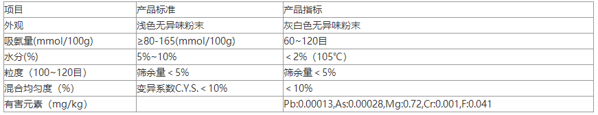 主要特性指標:銨交換容量為109-150毫克當量/